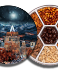 This tin is back by popular demand. Designed by Arthur Balluff and produced in the USA. It features our spectacular Boise nightscape, and is loaded with 2 pounds of delicious nuts roasted by City Peanut Shop in Downtown Boise, Idaho.